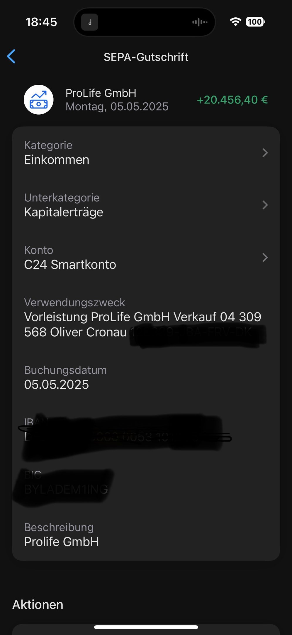 Ich habe den ersten Teil der Auszahlung in Höhe von 20.465,40 € erhalten.